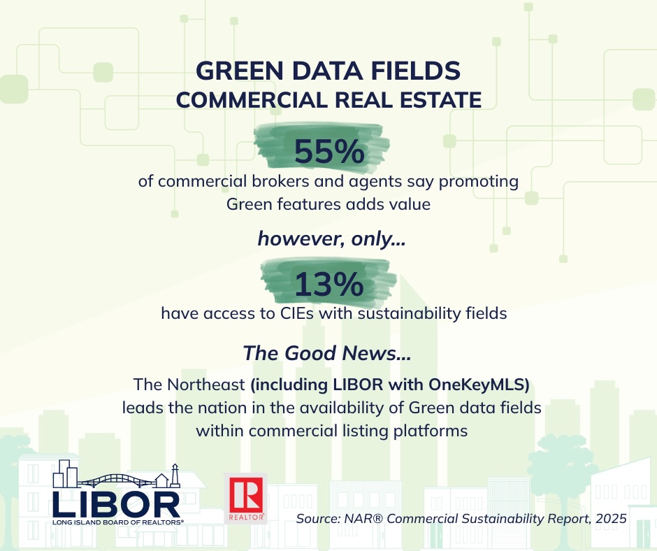 Long Island Board of REALTORS® and OneKey MLS provide Green data fields to help capture sustainability features in commercial listings.
